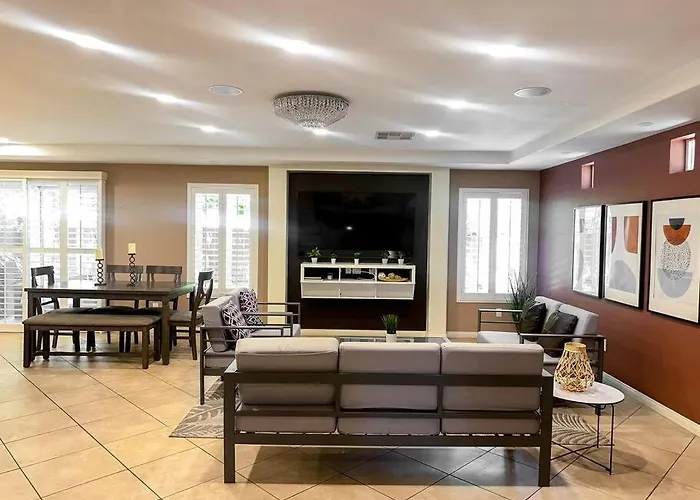 Eine Kaffee-/Teemaschine, ein Kühlschrank und ein Herd sind ebenfalls in der Küche dieser Villa vorhanden. Außerdem können Gäste einen Essbereich zur Selbstversorgung nutzen. Das Restaurant Gelatology liegt etwa 16 Gehminuten von der Unterkunft entfernt. Die Gäste können diese Villa in Las Vegas auch mit dem Auto vom Flughafen McCarran International in 16 Minuten erreichen.